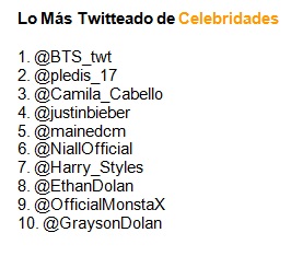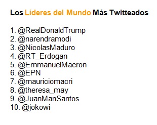 Entre los tweets más retwitteados a nivel mundial, se encuentran el famoso mensaje de Carter Willkerson y su petición por nuggets gratis un año, la despedida que el ex presidente Obama dedicó al pueblo de EUA, el mensaje de solidaridad de Ariana Grande tras los atentados de Manchester y el mensaje de Linkin Park para despedir a su frontman, Chester Bennington después de su suicidio.